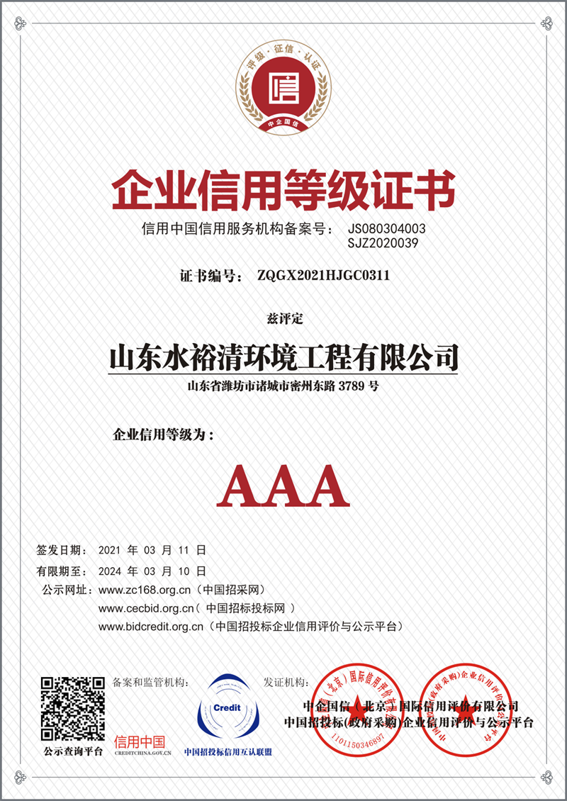 公司是 "AAA"级信誉企业,AAA级资信等级企业、AAA级重服务守信用企业,AAA级重合同守信用企业,是诚信供应商,重质量守信用单位,省级示范企业;拥有环境管理体系认证证书,质量管理体系认证证书;职业健康安全管理体系认证证书;