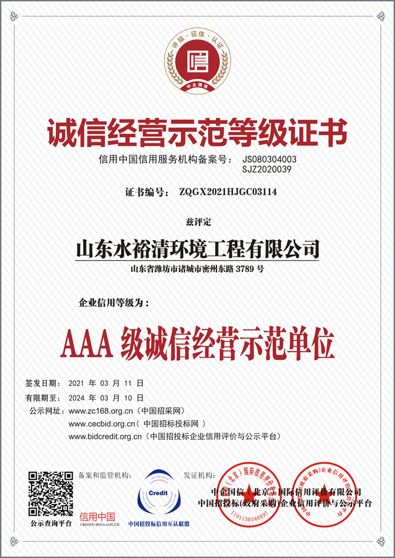公司是 "AAA"级信誉企业,AAA级资信等级企业、AAA级重服务守信用企业,AAA级重合同守信用企业,是诚信供应商,重质量守信用单位,省级示范企业;拥有环境管理体系认证证书,质量管理体系认证证书;职业健康安全管理体系认证证书;